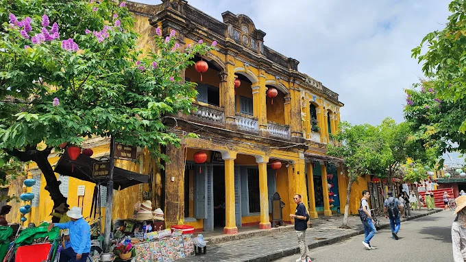 Những giàn hoa giấy rực rỡ nghiêng mình bên mái ngói cổ kính đã trở thành thương hiệu check-in phố cổ Hội An. Để cảm nhận trọn vẹn vẻ đẹp này, du khách hãy thử trải nghiệm dạo phố bằng xích lô, ngắm nhìn sắc hoa hòa quyện cùng nét trầm mặc của những bức tường vàng đặc trưng.