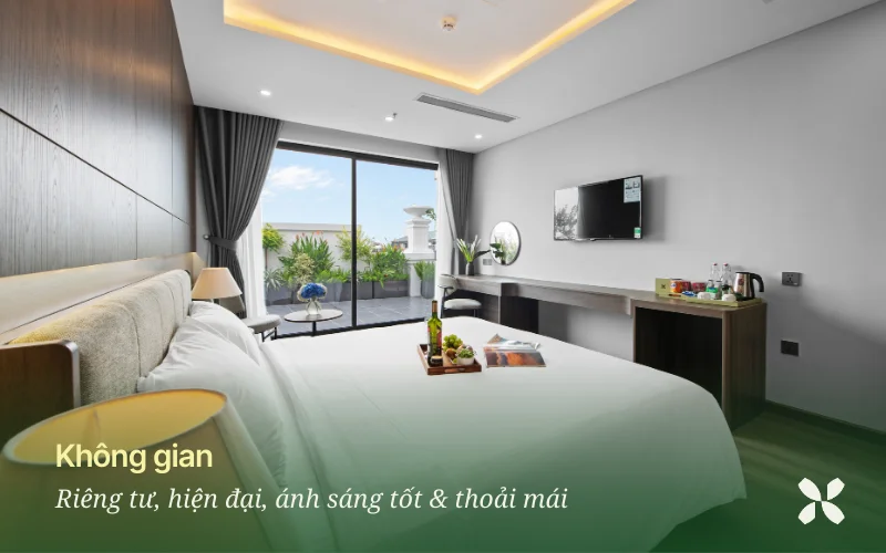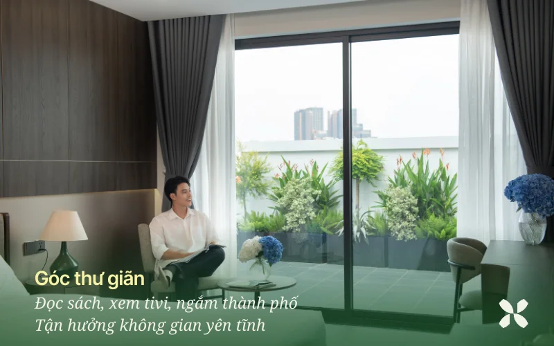 Không gian xanh giúp giảm bớt cảm giác ngột ngạt của thành phố, tạo nên bầu không khí nhẹ nhàng giống như một khu nghỉ dưỡng nhỏ. Buổi sáng thức dậy trong căn phòng ngập ánh nắng, buổi chiều đọc sách bên cửa sổ hay đơn giản là tận hưởng vài giờ yên tĩnh - đó chính là trải nghiệm mà nhiều người tìm kiếm khi lựa chọn staycation.