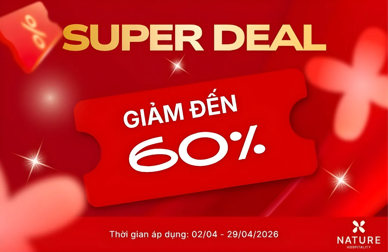 Cơ hội vàng để trải nghiệm kỳ nghỉ đẳng cấp 3-4 sao với mức giá chỉ từ 2 sao đã chính thức bắt đầu. Hệ thống Nature Hotel bùng nổ chương trình Super Deal lớn nhất tháng 4, mang đến ưu đãi cộng dồn lên đến 60% cho tất cả khách hàng đặt phòng sớm tại Hà Nội và Đà Lạt.
