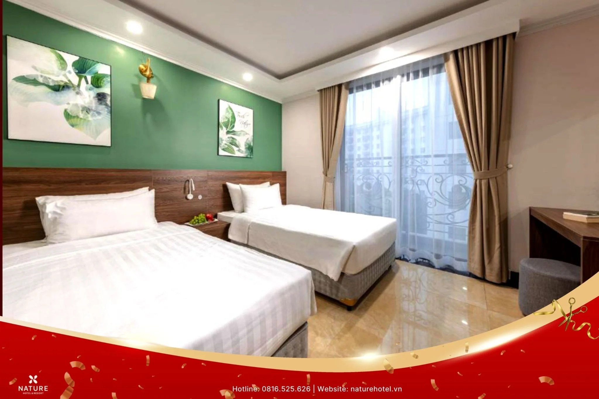 - Giảm thêm 20%: Đặc quyền dành riêng cho khách hàng thực hiện đặt phòng trực tiếp qua Website chính thức của Nature Hotel.
